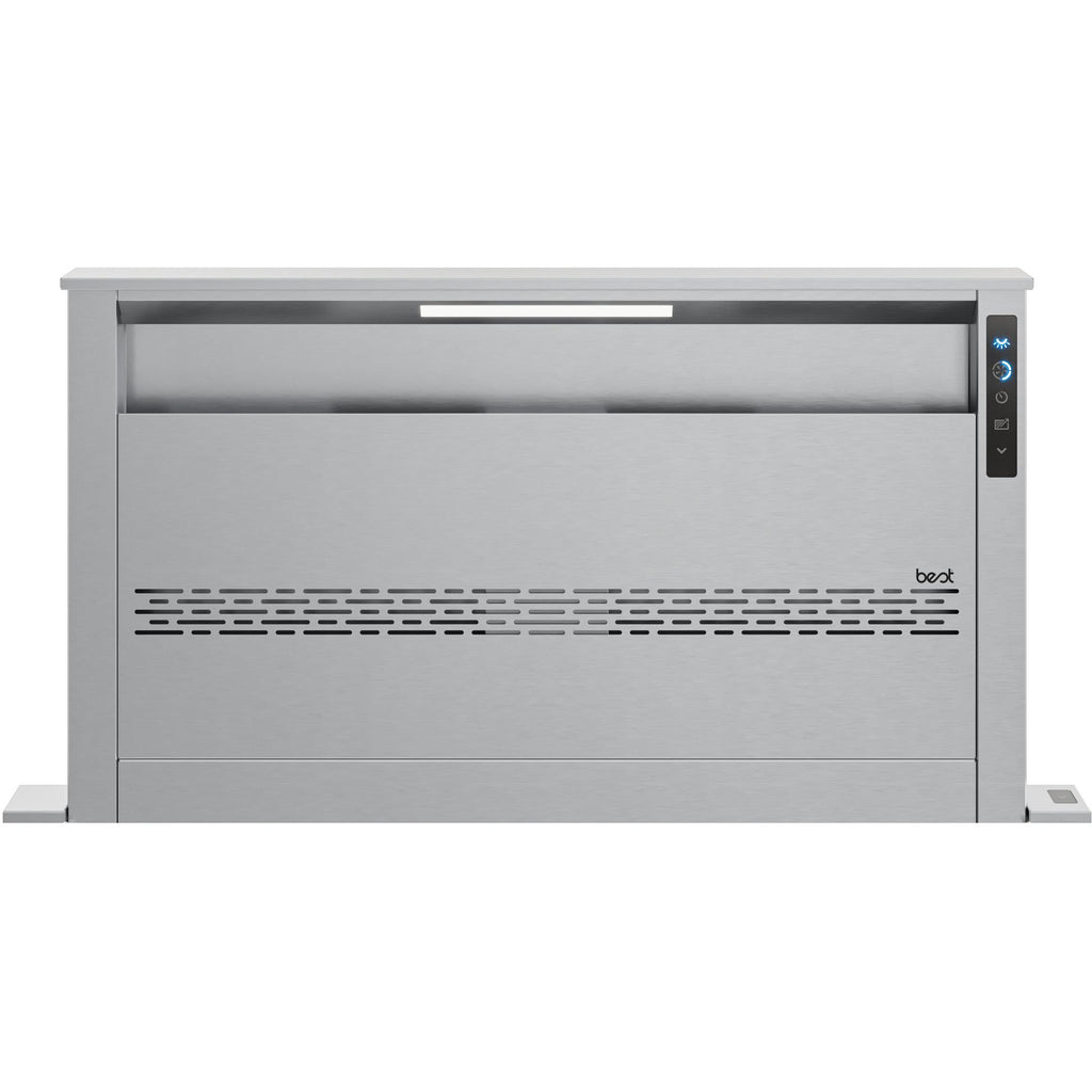 A touch of a button raises or lowers the 18" downdraft.