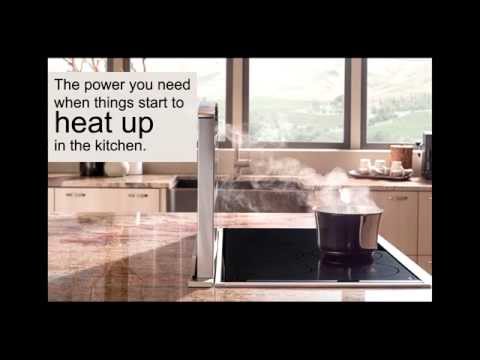 • At the touch of a button the Cattura downdraft quickly rises to a height of 18" to handle serious cooking ventilation requirements and tall pots - even on the front burners