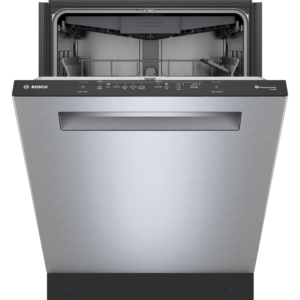 The 3rd rack provides extra space for flatware, large utensils and measuring cups. Its V shape leaves room below for tall items. *Compared to a Bosch dishwasher with 2 racks