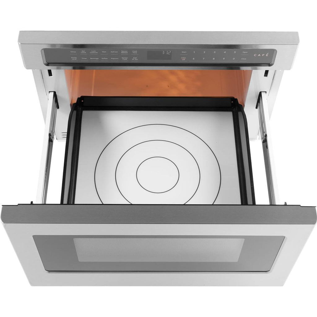 This easy open microwave extends like a cabinet drawer and sits under the counter for added convenience and easy access.