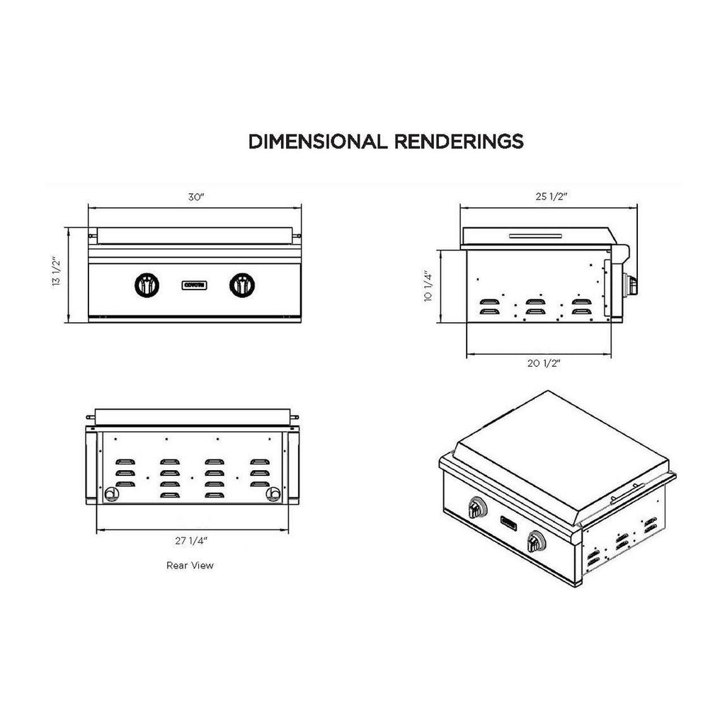 • Overall Dimensions: (H) 13 1/2" x (W) 30" x (D) 25 1/2"