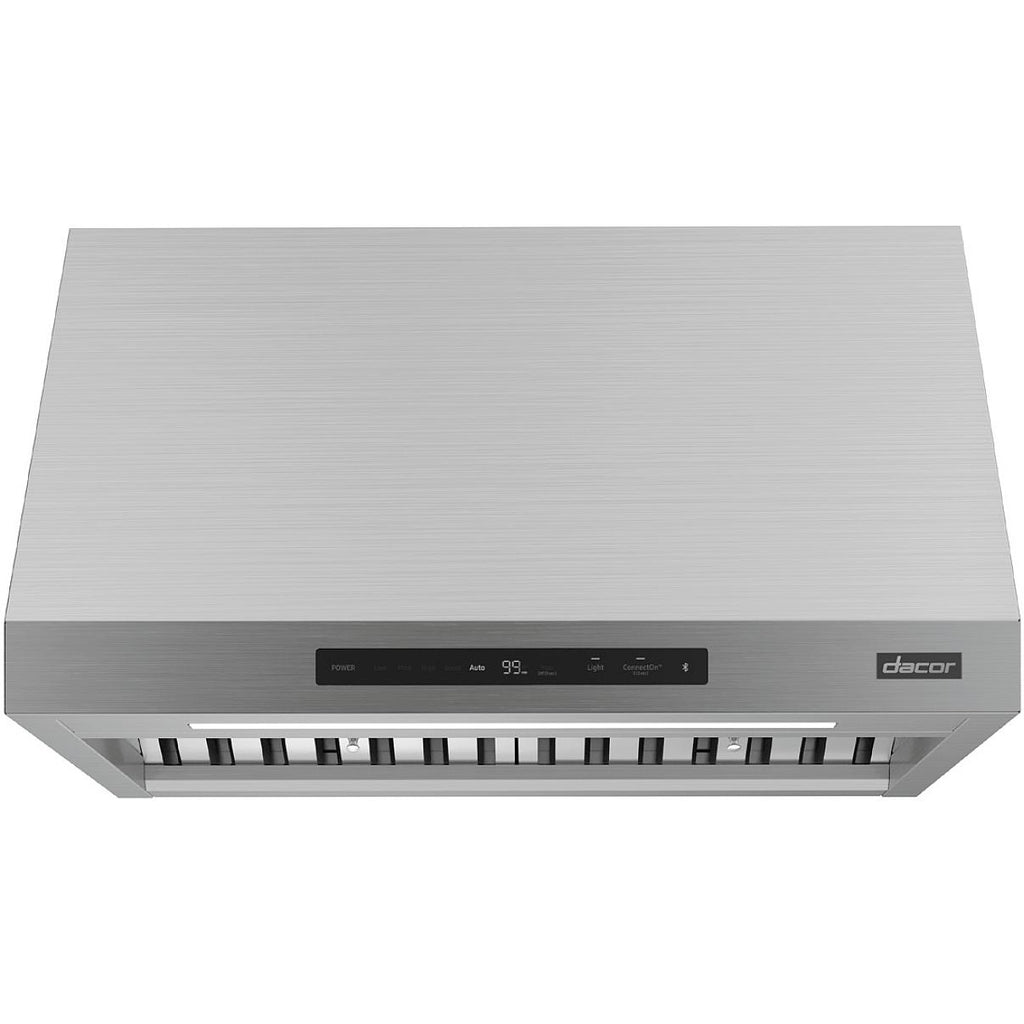 Smart functionality enables hood to automatically turn on in conjunction with a compatible Dacor cooking product.