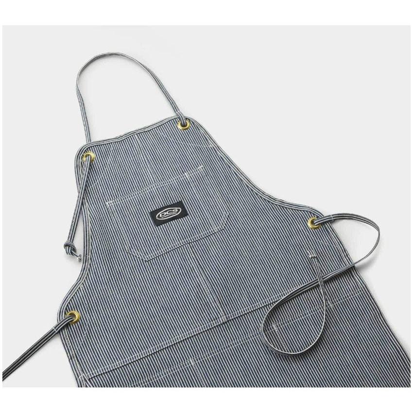 • Made from 100% vintage cotton hickory stripe and hand-finished with brass findings.