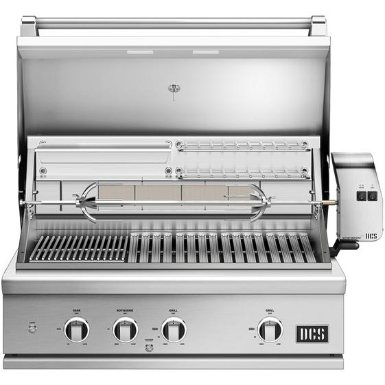 An infrared rotisserie burner provides controlled searing heat up to 12,000BTU. Perfect for entertaining, the heavy-duty motor can easily turn a 50lb load. The rotisserie rod is conveniently stored under the drip pan handle.