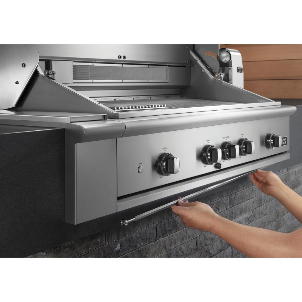 The 6” storage accessory extends your grill to fit a 42” or 54” space. It bolts seamlessly onto either side of the grill to store racks, grates and tools. This accessory is sold separately.