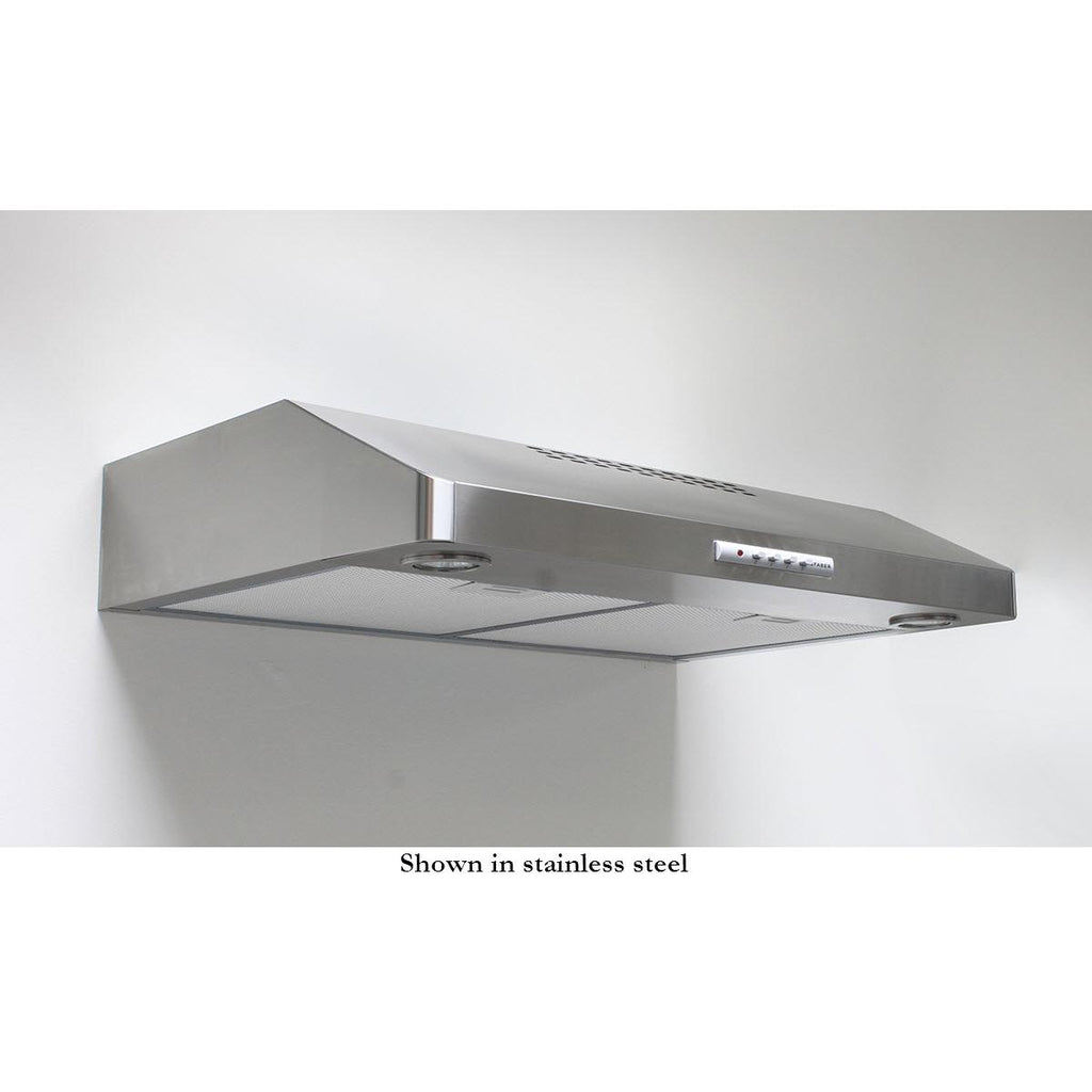 Attractive grids sit on top of the hood for recirculation back into the kitchen if not venting outside.