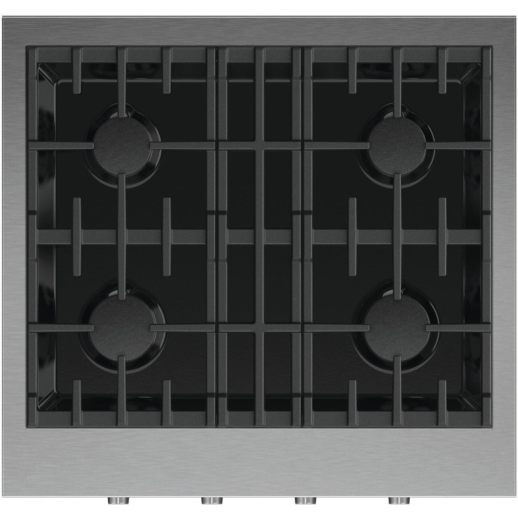 This rangetop is built to last with craftsmanship in every detail, featuring real stainless steel, cast-iron trivets, and titanium coated dials.