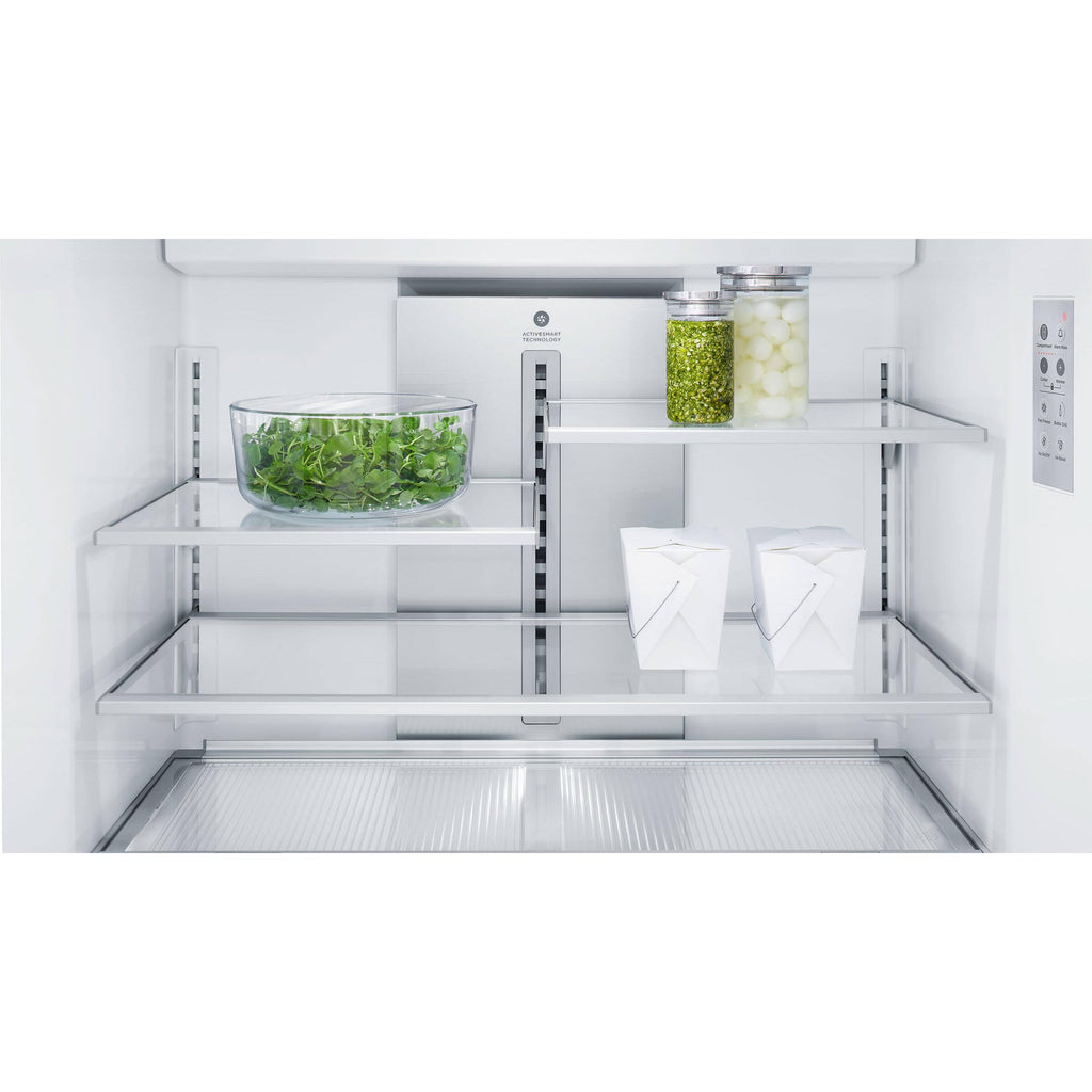 This Fisher & Paykel 36" bottom freezer refrigerator is equipped with an interior ice maker. This model also features ActiveSmart™... This Fisher & Paykel 36" bottom freezer refrigerator is equipped with an interior ice maker. This model also features ActiveSmart™ foodcare, adjustable glass shelves and LED lighting. Image shown with panels, sold separately. View more