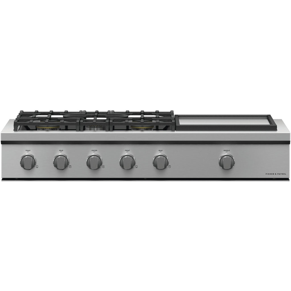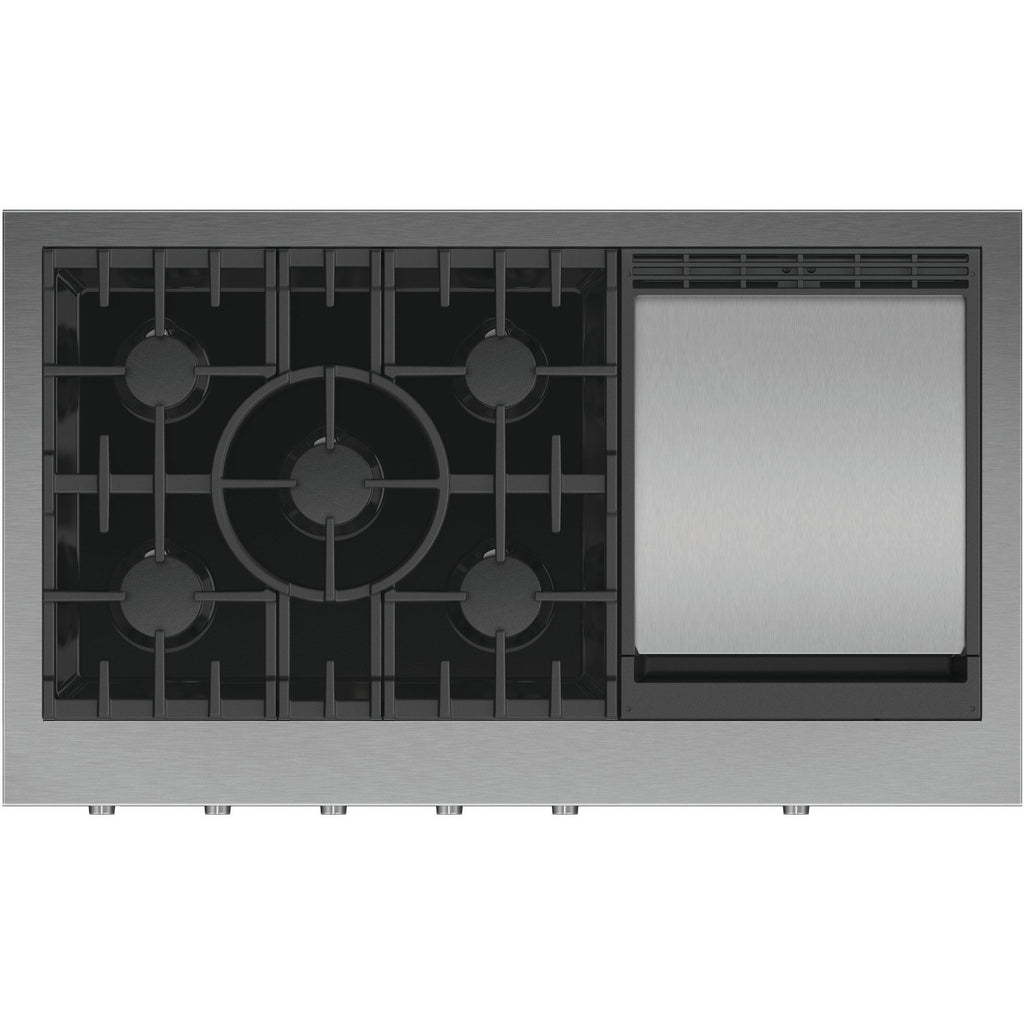 This rangetop is built to last with craftsmanship in every detail, featuring real stainless steel, cast-iron trivets, and titanium coated dials.
