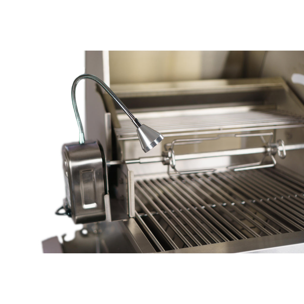 The Lux 400 combines high quality features with attention to detail, for a total of 37,500 of cooking power: 2 stainless steel main burners (15,000 BTU each) and 1 infrared rear rotisserie burner (7,500 BTU).
