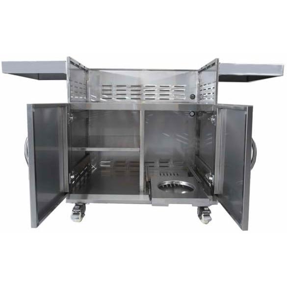 • Curved Stainless Steel Double Walled Hood with Polished Accents and Temperature Gauge