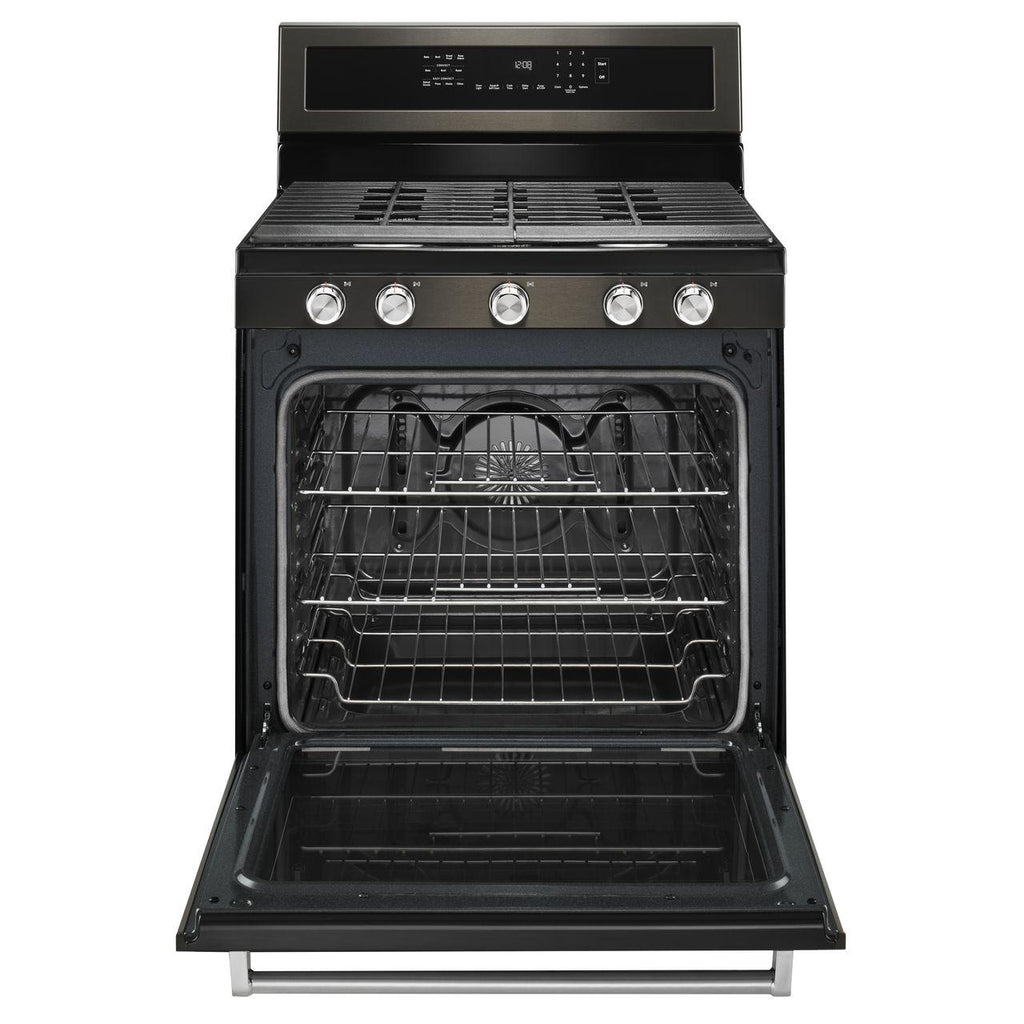 Combines a bold blend of professionally-inspired styling with sleek touches for the home. This range features Satin Textured Handles and the KitchenAid® Badge, a symbol of uncompromised quality.