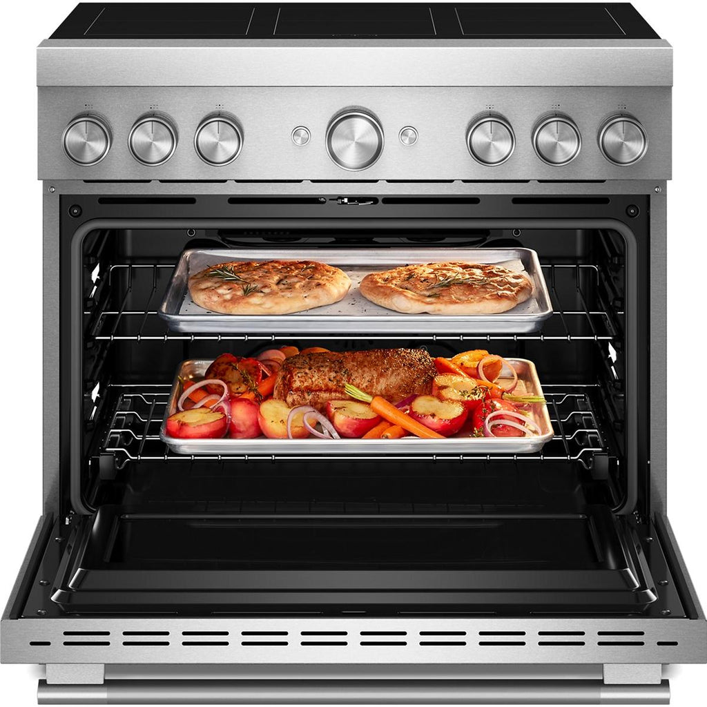 Features a unique bow-tie design with heating element and fan that provide even airflow and consistent temperatures throughout the entire oven for crisp, flaky baked goods, juicy, evenly browned roasts and flavorful, caramelized vegetables.