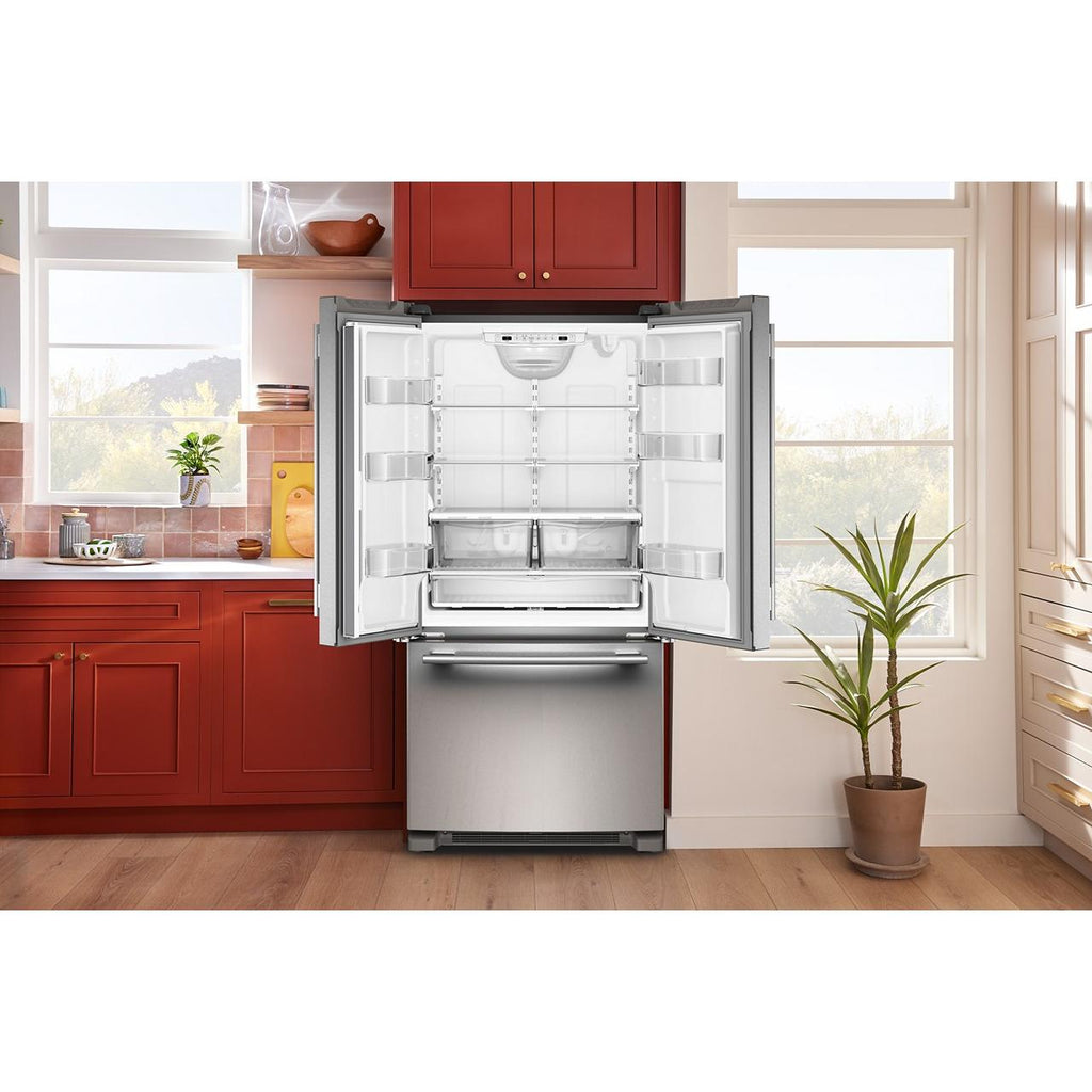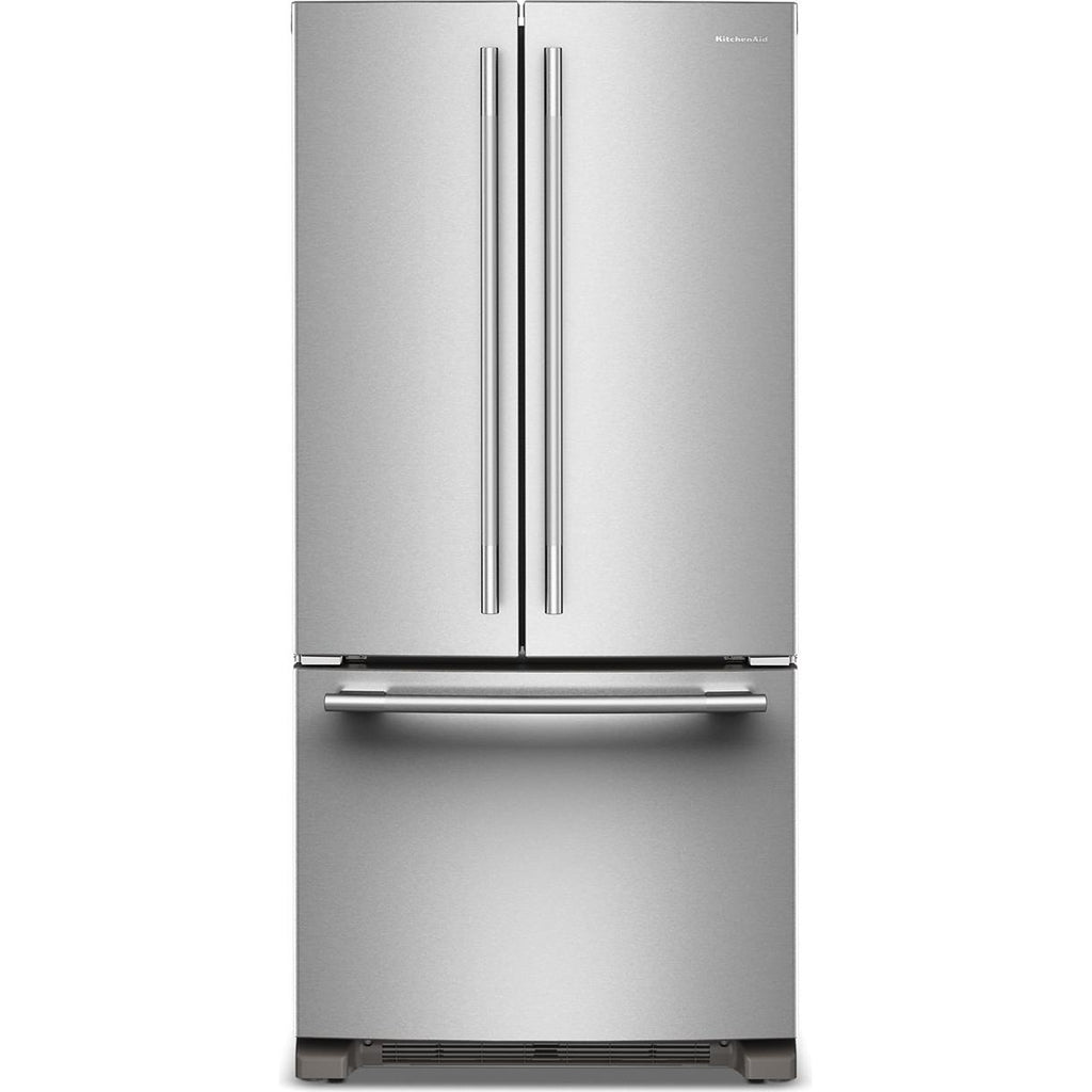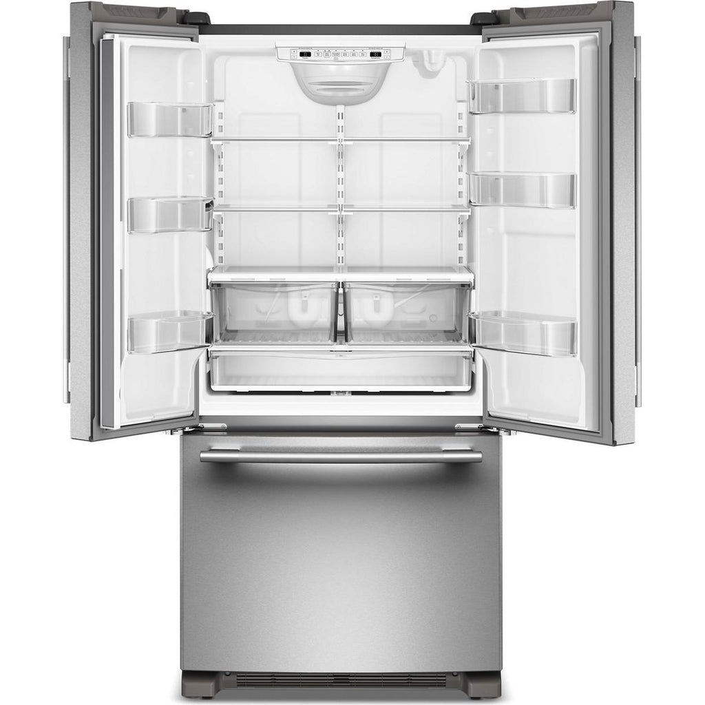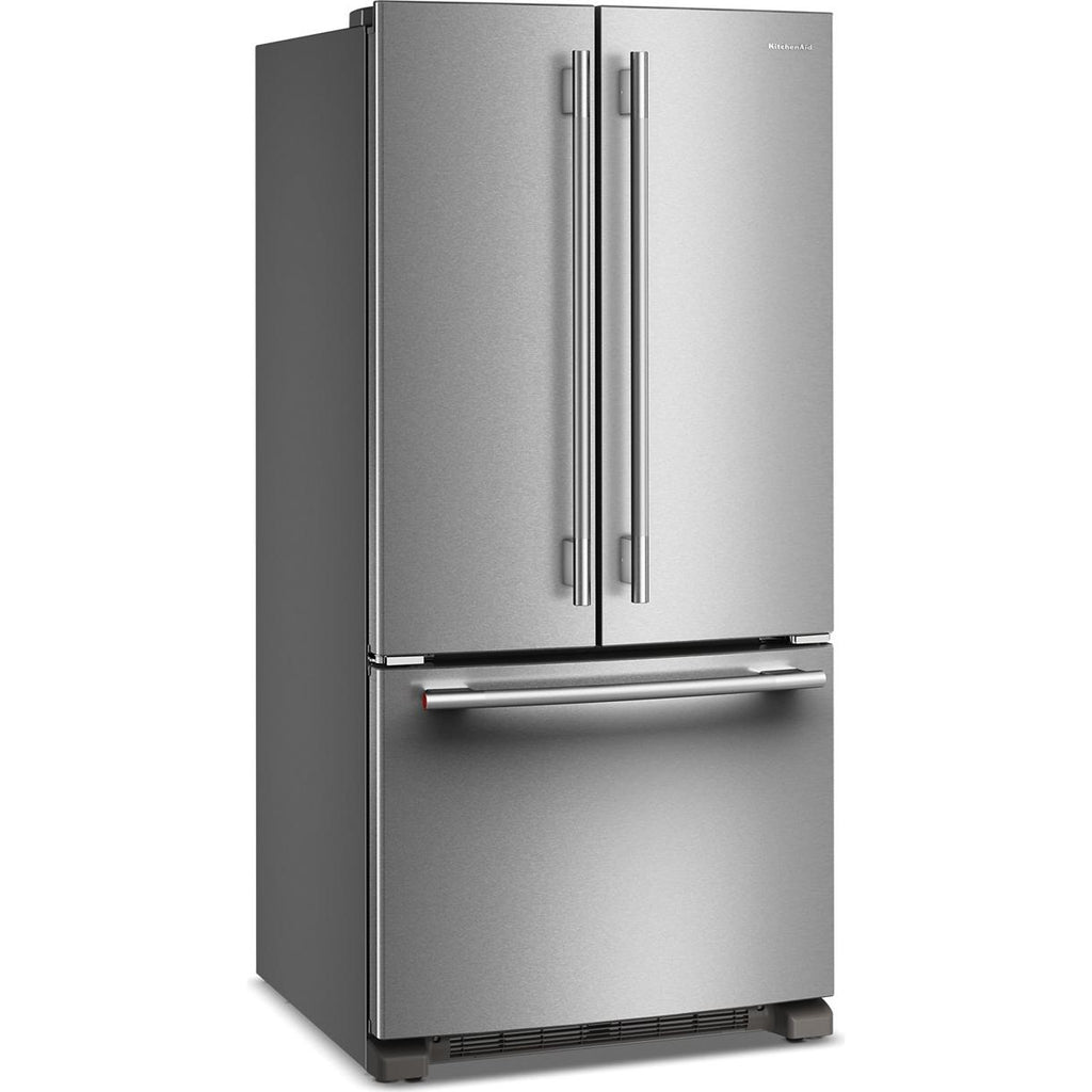 KitchenAid french 3-door refrigerator with crisper drawers, glass shelves and a total capacity of 22 cu. ft.