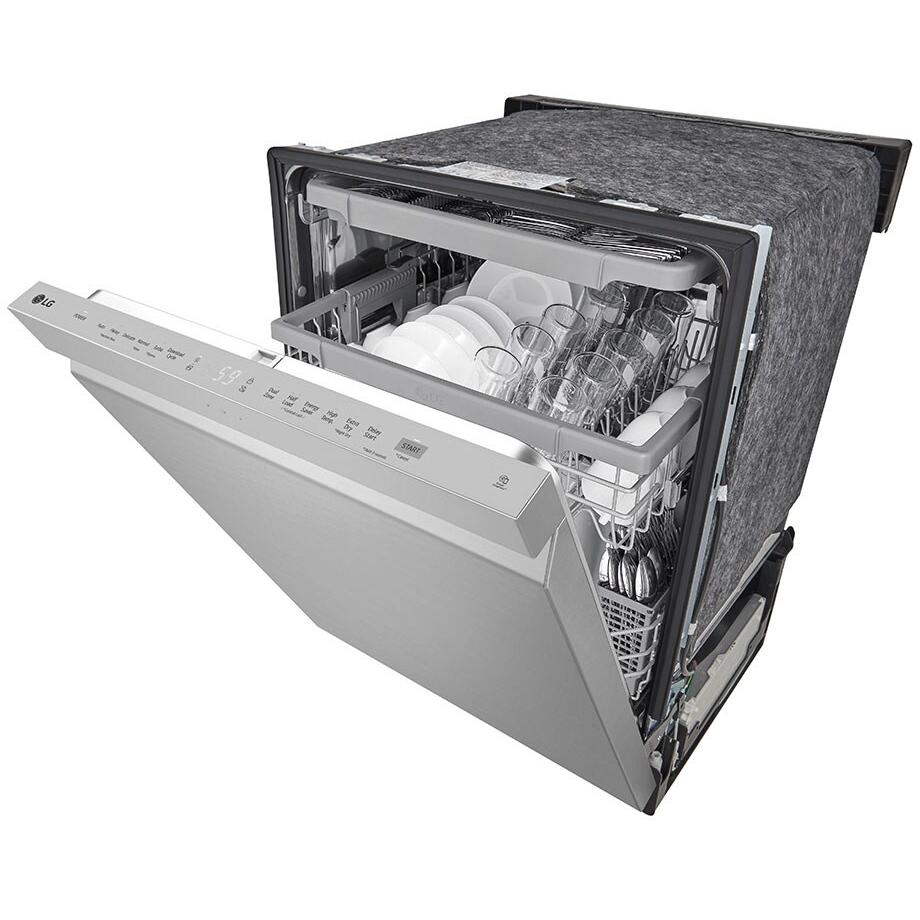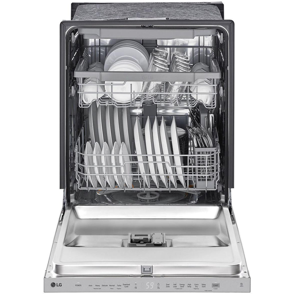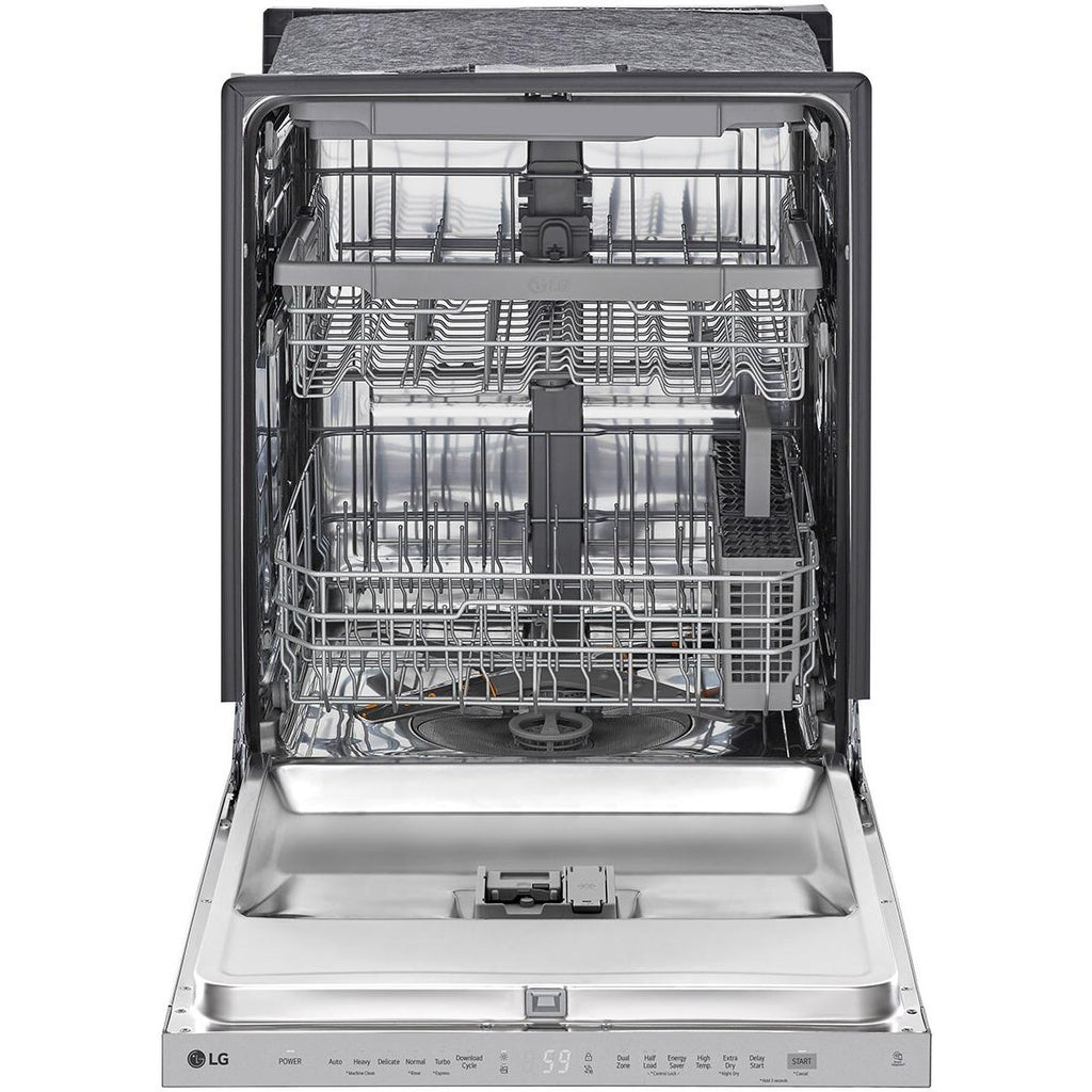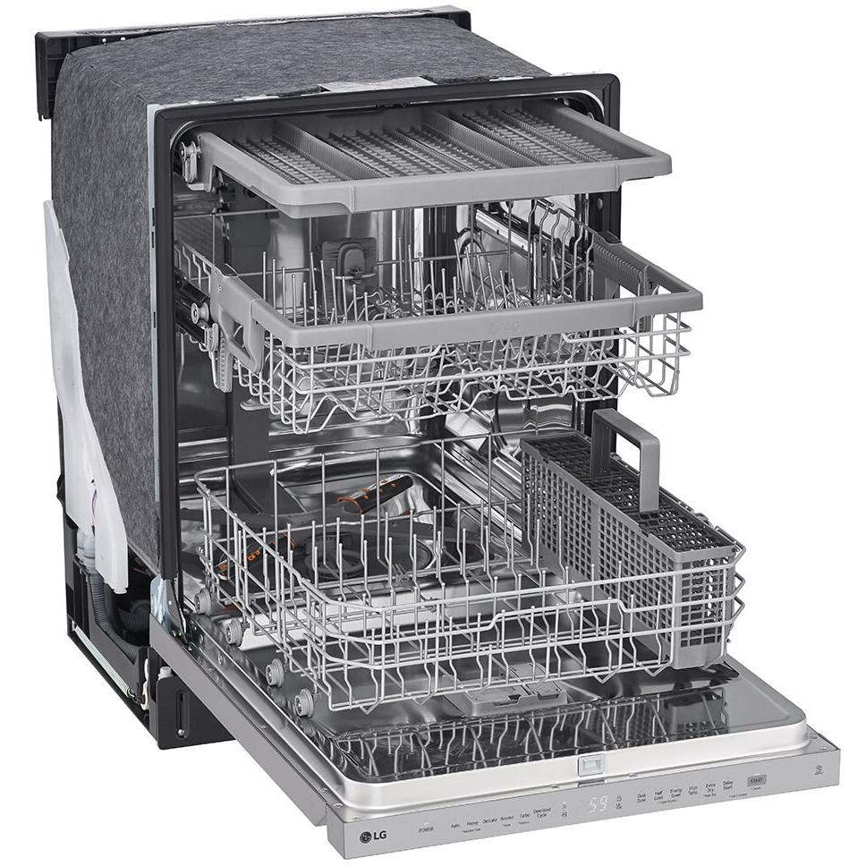 LG 24" Top Control Dishwasher with LED display featuring EasyRack Plus, QuadWash™ and Dynamic Dry™ . LG’s QuadWash® technology gets... LG 24" Top Control Dishwasher with LED display featuring EasyRack Plus, QuadWash™ and Dynamic Dry™ . LG’s QuadWash® technology gets dishes clean the first time. With four spray arms instead of just two, QuadWash® uses Multi-Motion arms that rotate back and forth while spinning to power-clean dishes from multiple angles throughout the entire cycle. View more