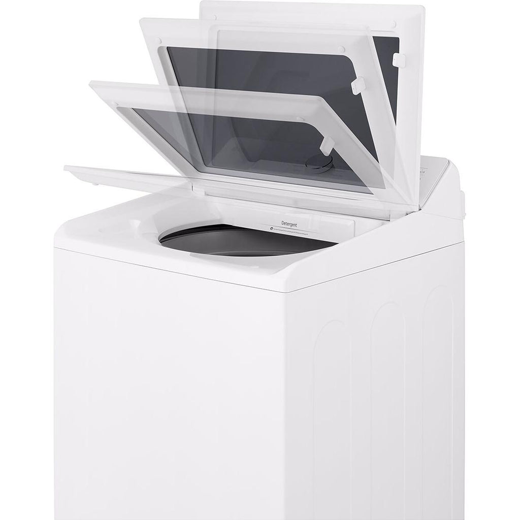 EasyUnload™ design is hidden beneath the sleek glass lid. The is angled the washer front for a more comfortable, ergonomic reach. Now you can easily retrieve stray items from the bottom of the tub—with no sacrifice in capacity. Pair it with an LG dryer that has the 2-way LG EasyLoad™ door and seamlessly transfer clothes from washer to dryer and dryer to basket.