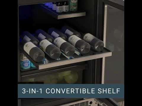 • 3-in-1 Split Convertible Shelf offers cantilevered glass shelving, wine racks, or hybrid options