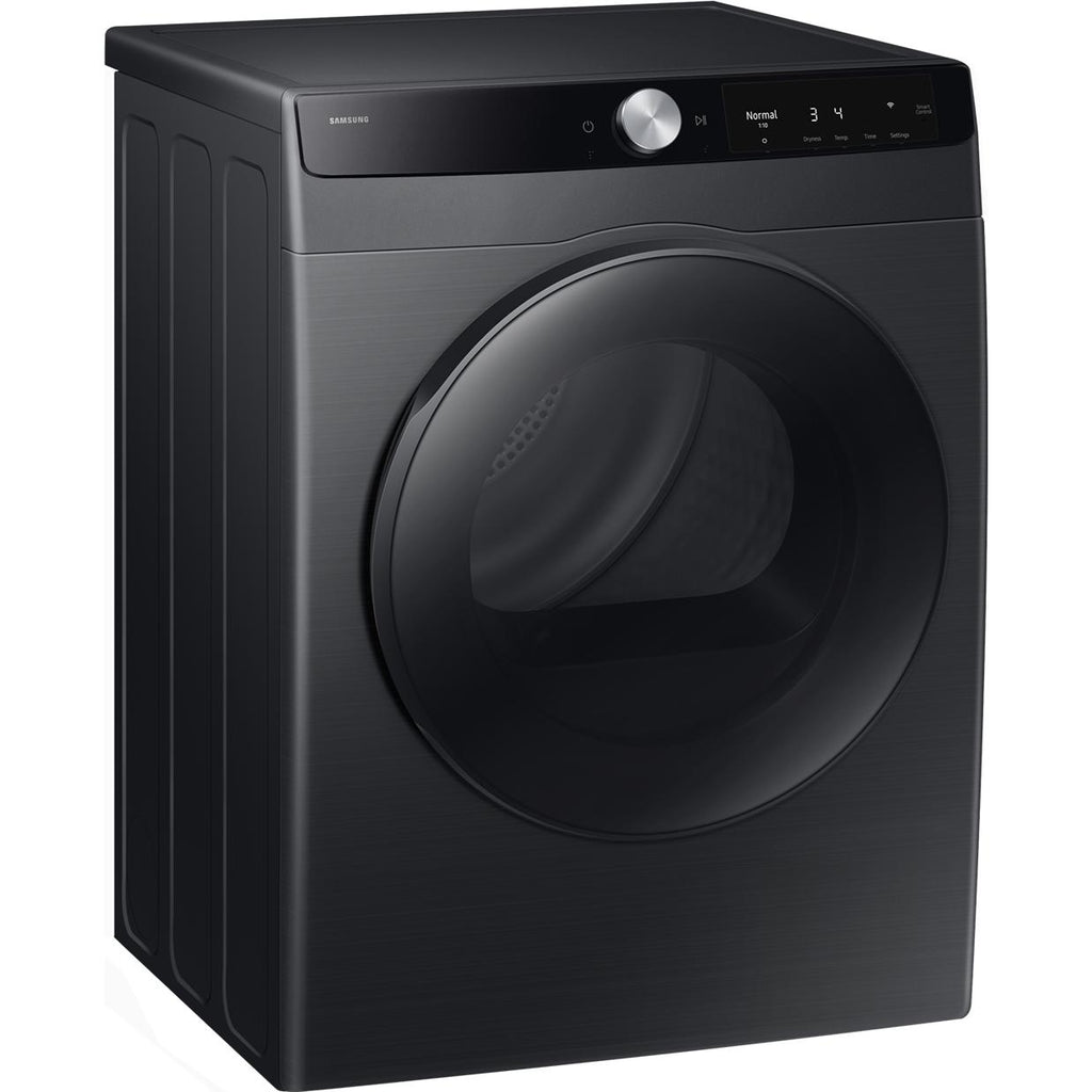 Samsung compact 4.0 cu.ft. electric dryer designed for efficiency and convenience. Featuring Smart Control, dual heater performance, reversible door, wrinkle-prevent... Samsung compact 4.0 cu.ft. electric dryer designed for efficiency and convenience. Featuring Smart Control, dual heater performance, reversible door, wrinkle-prevent care, damp alert, and multiple drying levels and settings. With 15 drying cycles, 13 options, interior drum light, and a stainless steel drum, this dryer delivers versatile drying results in a modern black finish. View more