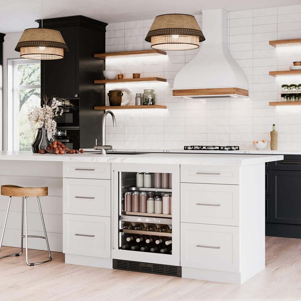 • Soft-close function on both door and full extension wine shelf