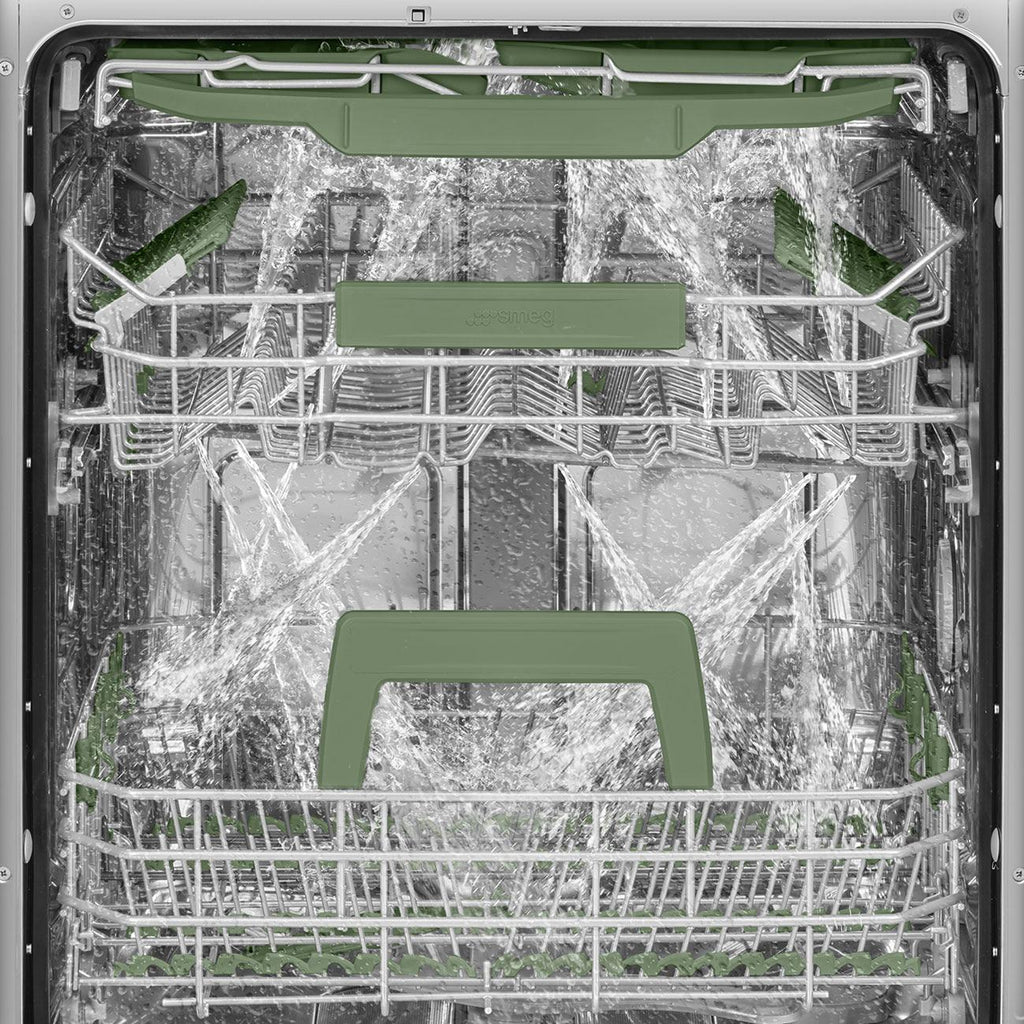 The Orbital Wash System, a feature of 24" SMEG dishwashers, consists of a double spray arm with contra-action rotation which distributes water evenly throughout the cavity. This ensures excellent wash quality, and a greatly-reduced noise level.