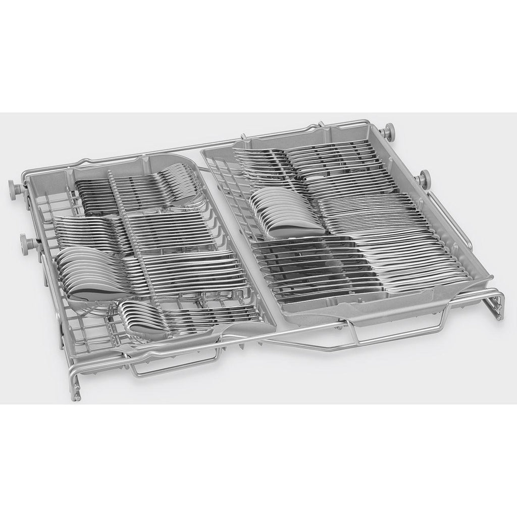 This comprises two independent sliding, pull-out tray racks for easier loading/unloading of cutlery. Various loading systems and configurations are possible. For example, tea cups can be loaded with the right-hand rack set in the low position, while the left-hand rack or both can be removed to allow large dishes to be put in the top basket.