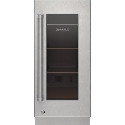 Sub-Zero 15" Designer Series Undercounter Stainless Steel Glass Door Panel with Lock and Pro Handle - Right Hinge.