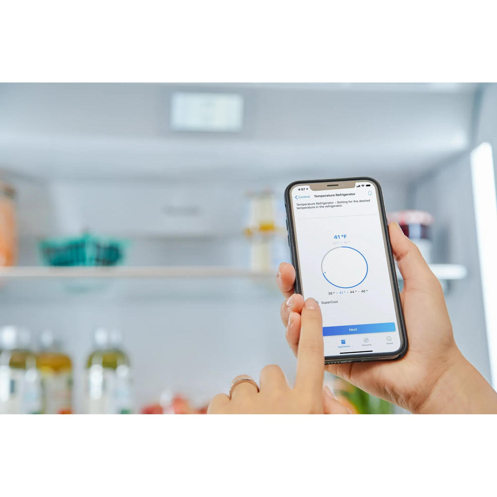 A touch-screen TFT display panel controls settings throughout the refrigeration unit, including individual temperature control, lighting and Open Door Assist.