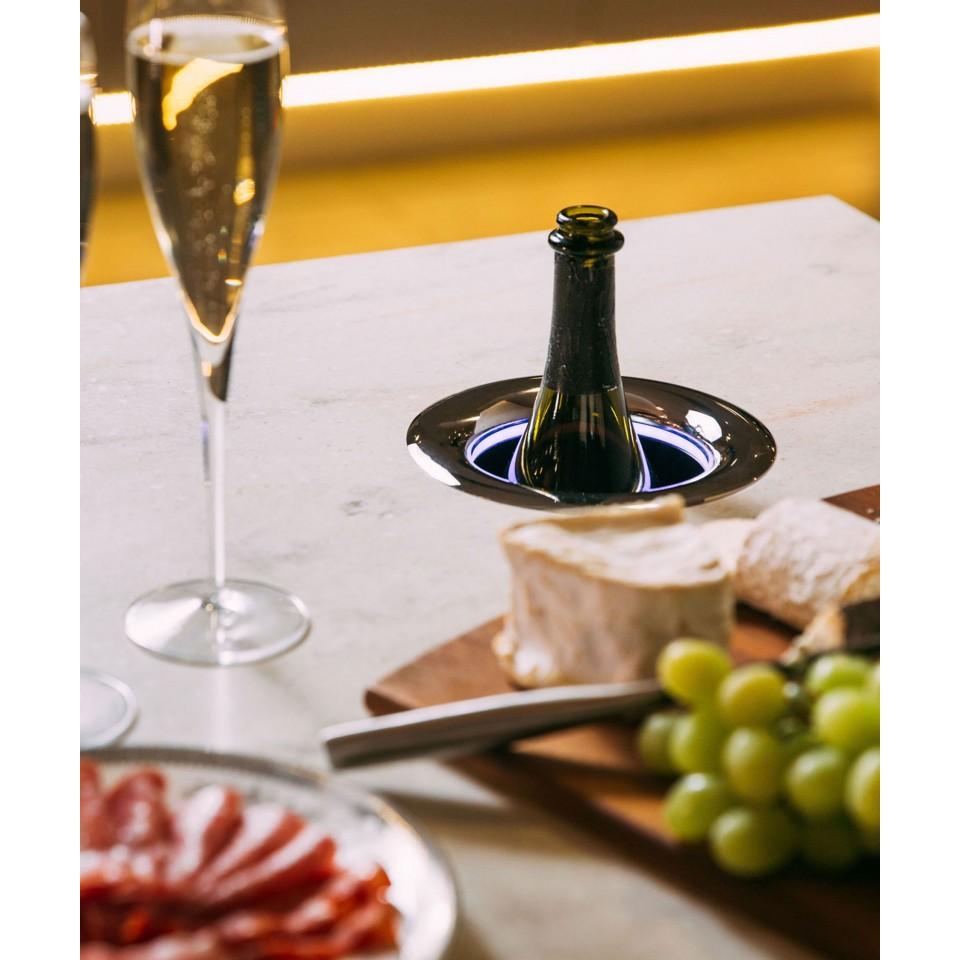 U-ChillTM uses only electricity to create a cold-air jacket so the bottle remains chilled and dry. Maintenance free, and without a traditional ice bucket.