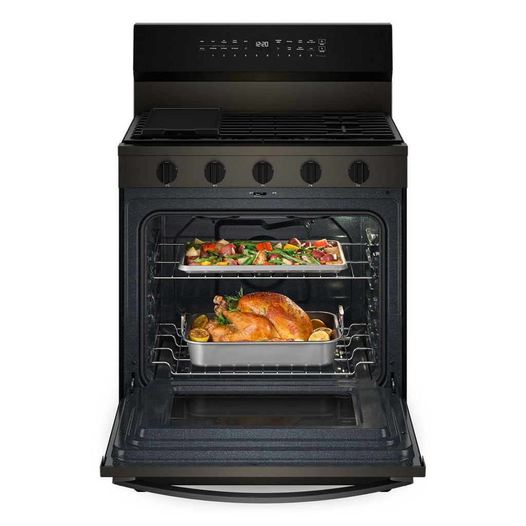 The Whirlpool 30-inch Freestanding Gas Range features Air Fry Technology and a spacious 5.3 cu. ft. oven capacity. This range... The Whirlpool 30-inch Freestanding Gas Range features Air Fry Technology and a spacious 5.3 cu. ft. oven capacity. This range offers versatile cooking options and ample space, allowing you to prepare healthier, crispy dishes right in your oven. View more
