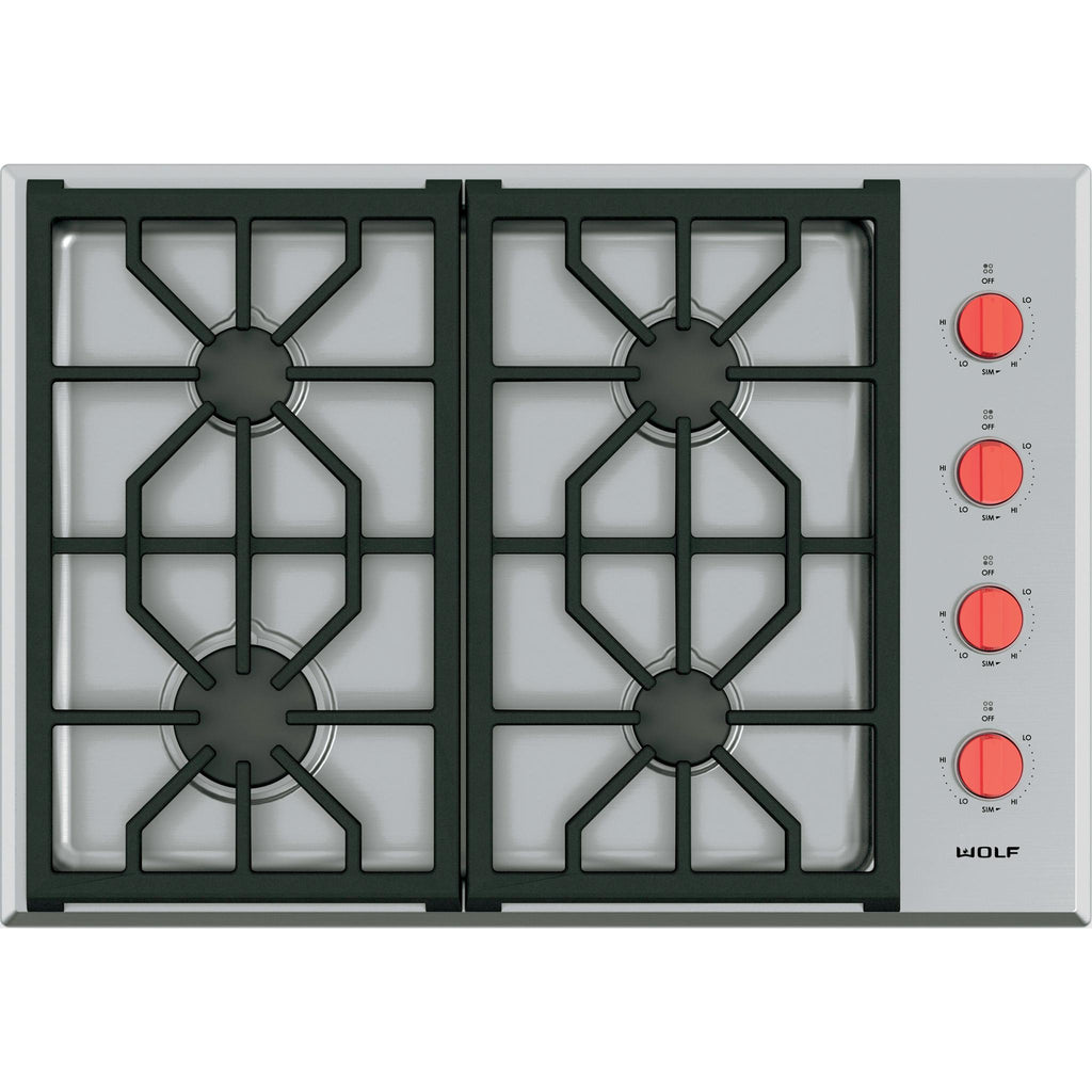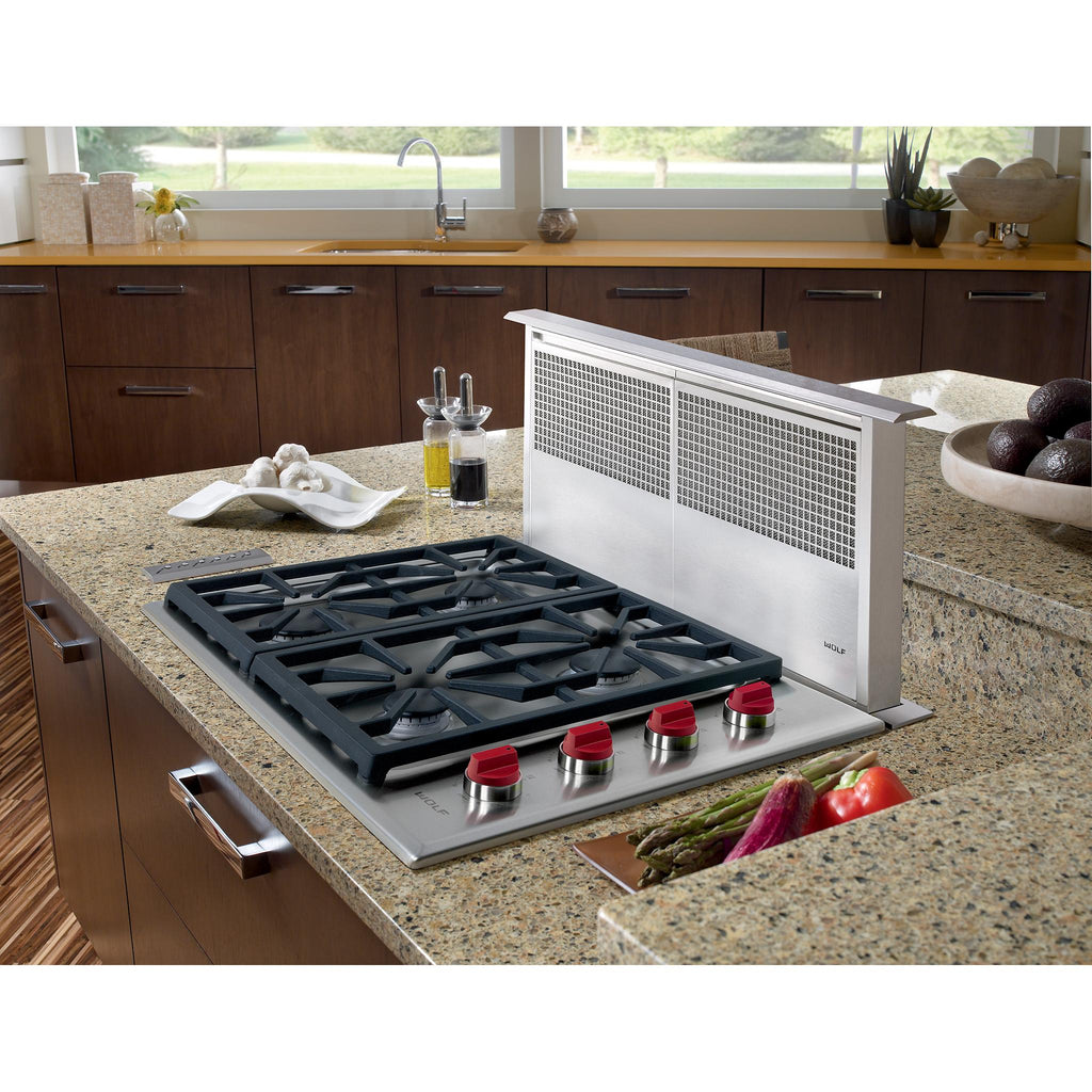 Wolf's patented dual-stacked burner design means each spot on your cooktop is really two burners in one. The upper tier of the back burner produces up to 18,000 Btu for searing steaks and fast boils.
