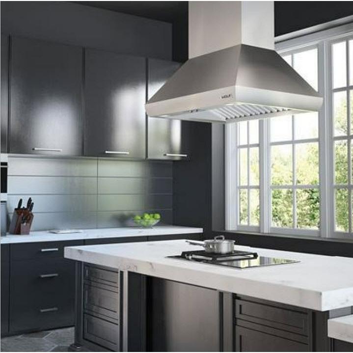 Crafted of heavy-duty stainless steel, it accommodates custom hood treatments, and is recommended for use with all Wolf cooking appliances.