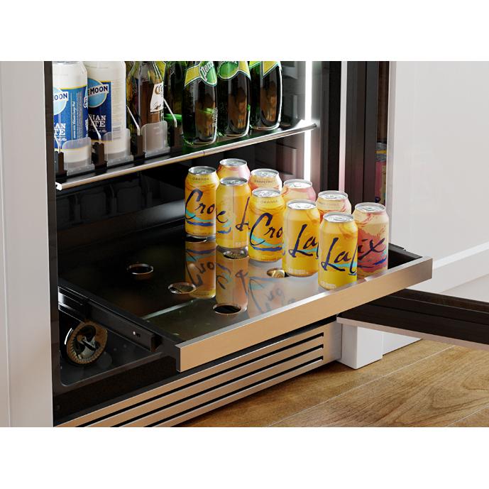 Includes an adjustable 3-row spring-loaded drink caddy which pushes drinks forward for quick and easy access